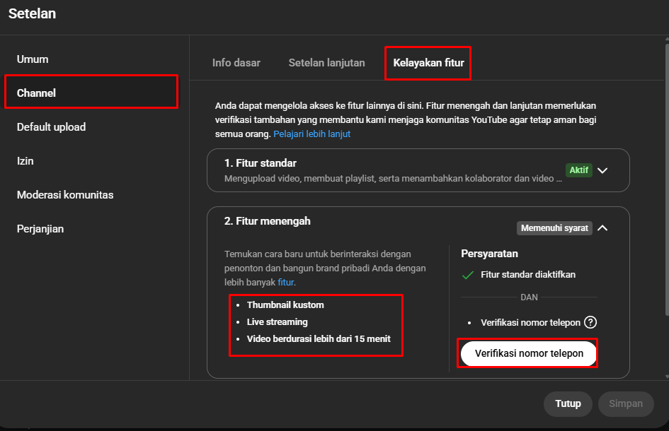 Berikut langkah-langkah untuk memverifikasi akun dan mengaktifkan custom thumbnail: